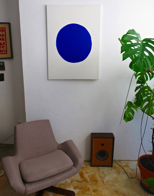 Imagino que este "Welcome", seja a um "Welcome" a um consultório de psicologia. E esta é a cadeira onde se senta o psicólogo, enquanto o paciente fica do outro lado, a olhar para o grande círculo azul.